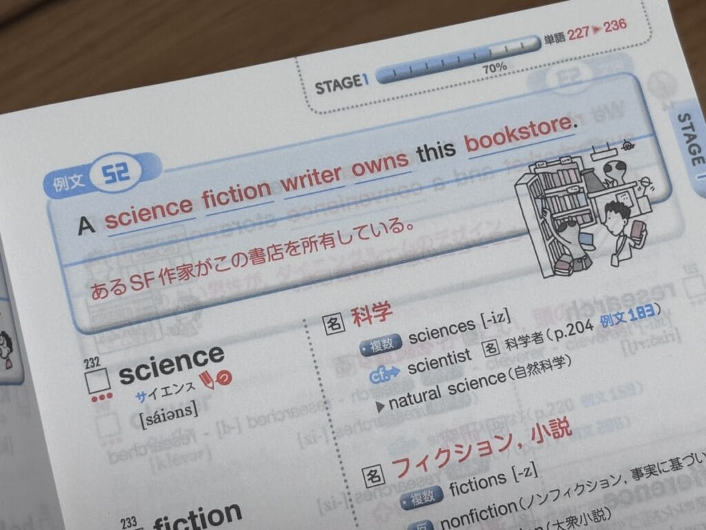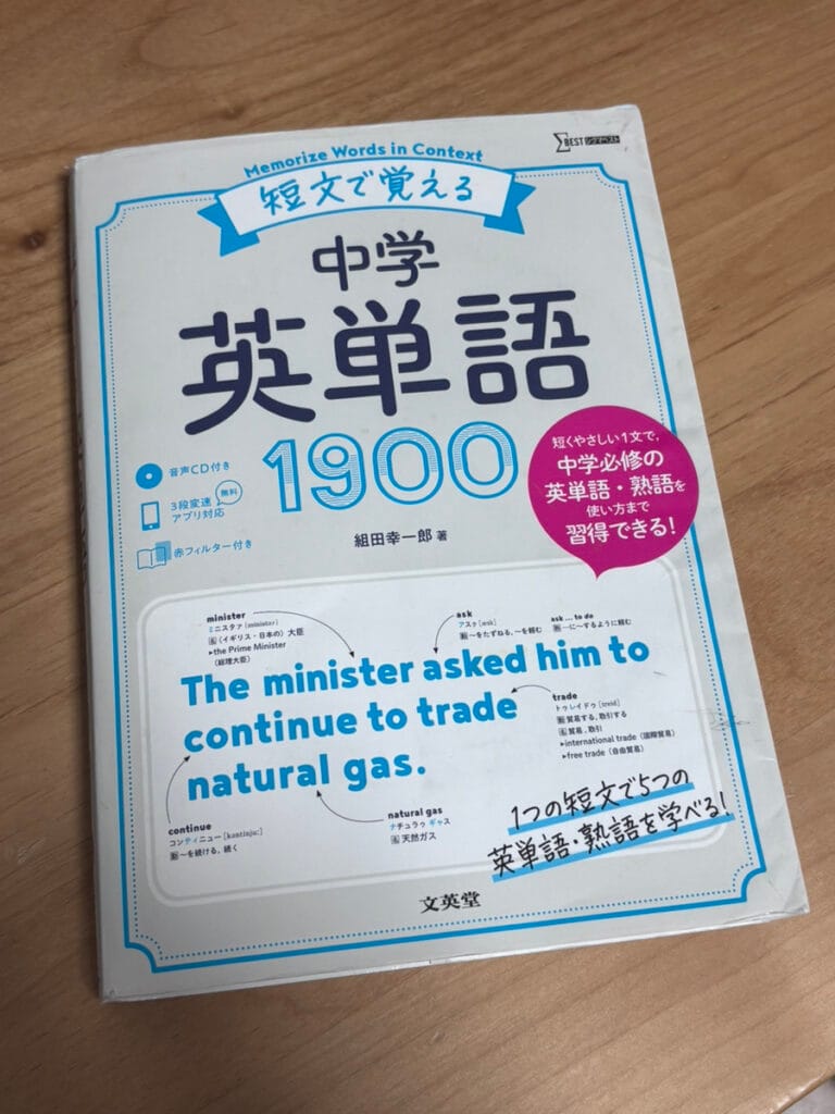 単語文法セットで覚えるのがいいよ!とおすすめされた中、そういえば持ってた!と思いだしたのがこちらの単語帳。私自身、ただ英単語を覚えてもどんなふうに使うのかわかんないと意味ないよな…と本屋で色々な単語帳と比較していいなと思って購入した1冊です。