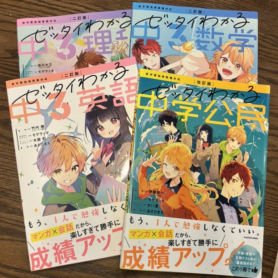 英語、数学、理科、そして新しく始まる公民を一気に揃えました。